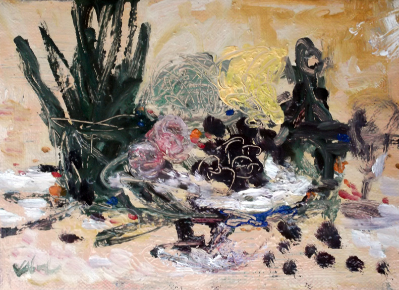 珍しい絵になった。 無論悪くはない。 こういう絵の方向で行くのかというと、 まったくその予定はないし、そんな器用なまねは私にはできない。 いつも一回一枚だ。