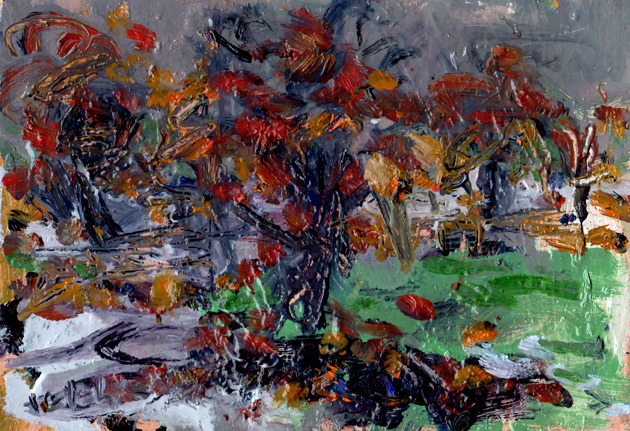 18年度個展出展予定作 太平洋岸の秋と冬は、空気が澄んで風景日和が続く。 真冬は寒いが、風のない晴天も少なくない。 近所の公園でも見事な紅葉が楽しめる。 柿の実も大切なモチーフだ。 秋はさみしい季節だが、絵描きにはメッチャ忙しい。 一覧 戻る 次へ Table Back Next