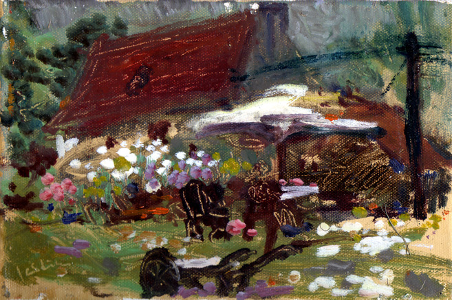 AN OLD HOUSE WITH FLOWERS 2012 Oil on canvas 22.7×15.8cm