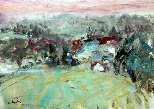 この絵が出来たとき、すぐいいとわかった。 「やったぁ〜!」と思った。 しばらく見て、落ち着いてくると「そうでもないか」とも思った。 さらに眺めていた。 「やっぱり悪くないかな」と思い直した。 もしかすると、南仏作品の最高傑作かもしれない。
