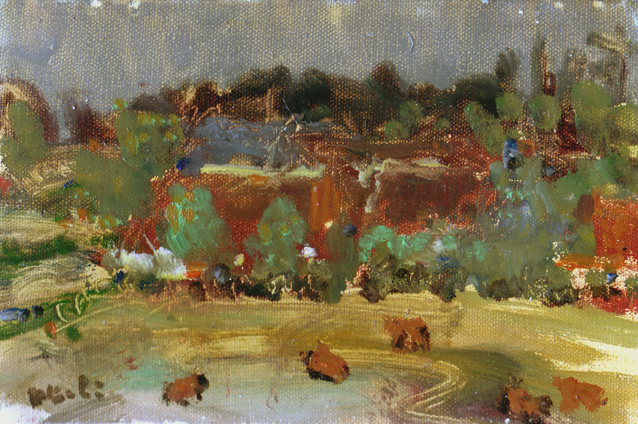 この手前の絵『小さな村落』を描いている場所から左150度ぐらいの方向を見ると、