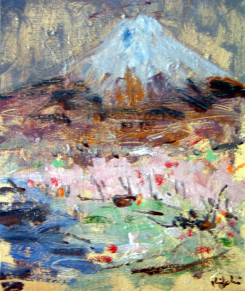 MT.FUJI WITH CHERRY BLOSSOMS oil on canvas 45.5×37.9cm