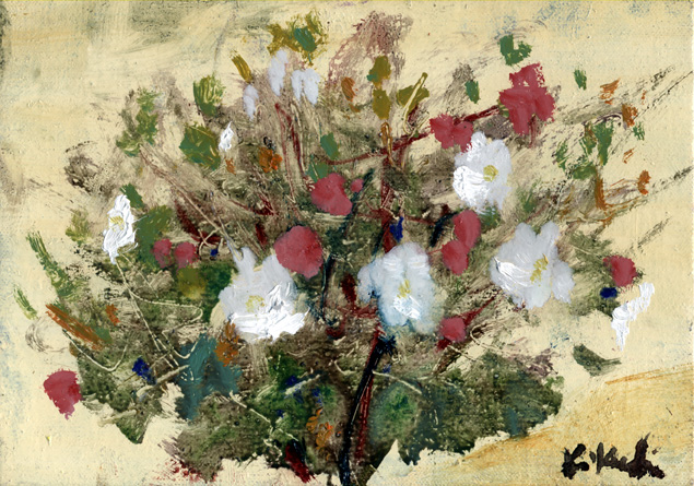 『酔芙蓉』 油彩・キャンバス SM DRUNK HIBISCUS 2007 OiI on canvas 22.7×15.8cm