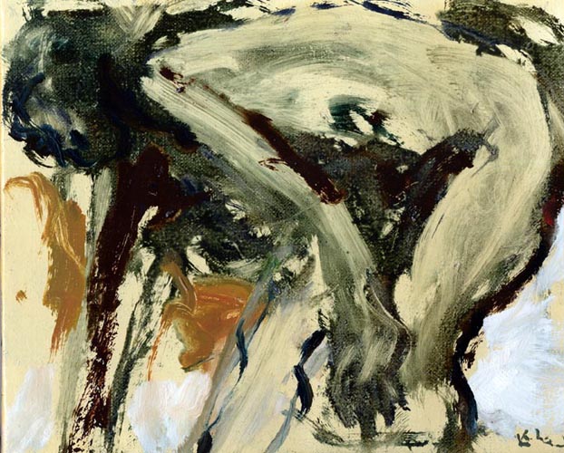 05年個展出展作品 この絵は美しいと思う。 両腕と脚にはバーントアンバー(焦げ茶色)がそのまま使ってある。 もともと決して美しい色ではないが、この絵では美しく見える。 一覧 戻る 次へ Table Back Next