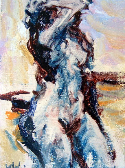 東京都・個人蔵 まったく裸婦は難しい。 この裸婦は身体が少し後に傾いてくれた。この傾きがいい。 もちろん、意図して描いたわけじゃない。偶然と言えば偶然。 だけど、間違えなく私が描いた。 これがイッキ描きの醍醐味だ。 一覧 戻る 次へ Table Back Next