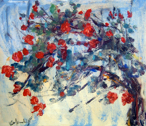 『赤い蔓バラ』 油彩・キャンバス