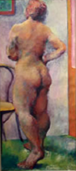 『裸婦習作・後ろ2』 油彩・キャンバス 変形80 NUDE(ETUDE/BACK2) 1979 Oil on Canvas 145.5×65.2p >